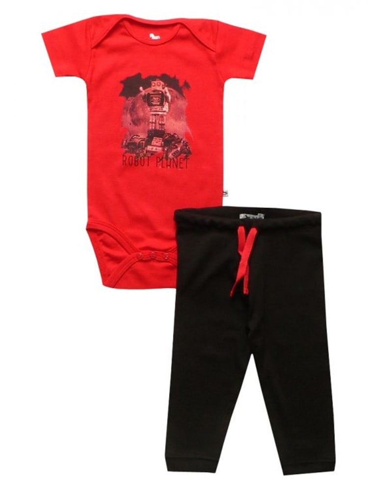* Ön kısmında baskı bulunan kısa kollu body ve penye pantolondan oluşan 2 parça set