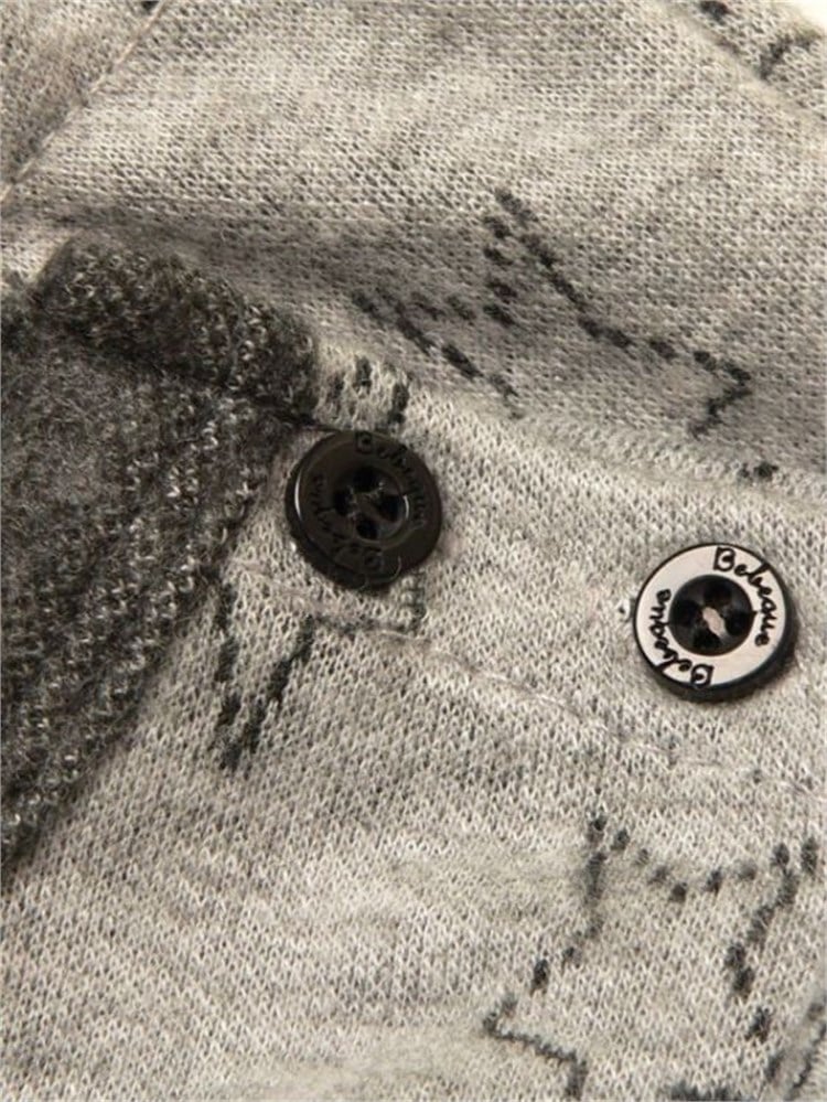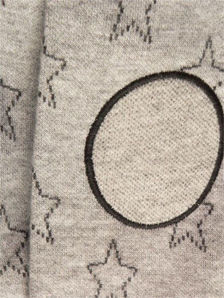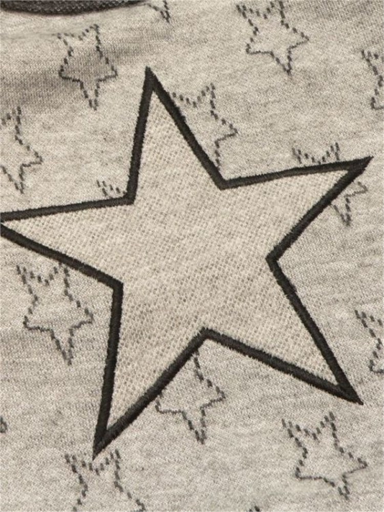 * Ön kısmında yıldız aplikesi bulunan, yıldız desenli, yaka kısmı düğmeli üst ve alttan oluşan 2 parça set