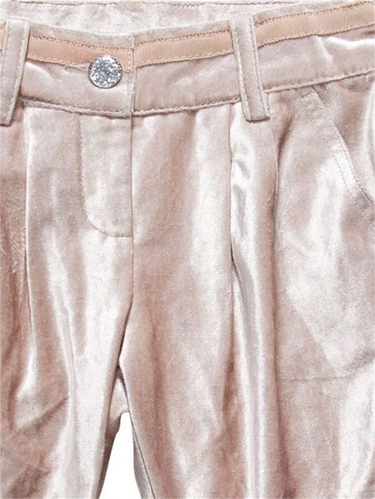 * Ön kısmında çiçek işlemeleri bulunan velur kadife pantolon