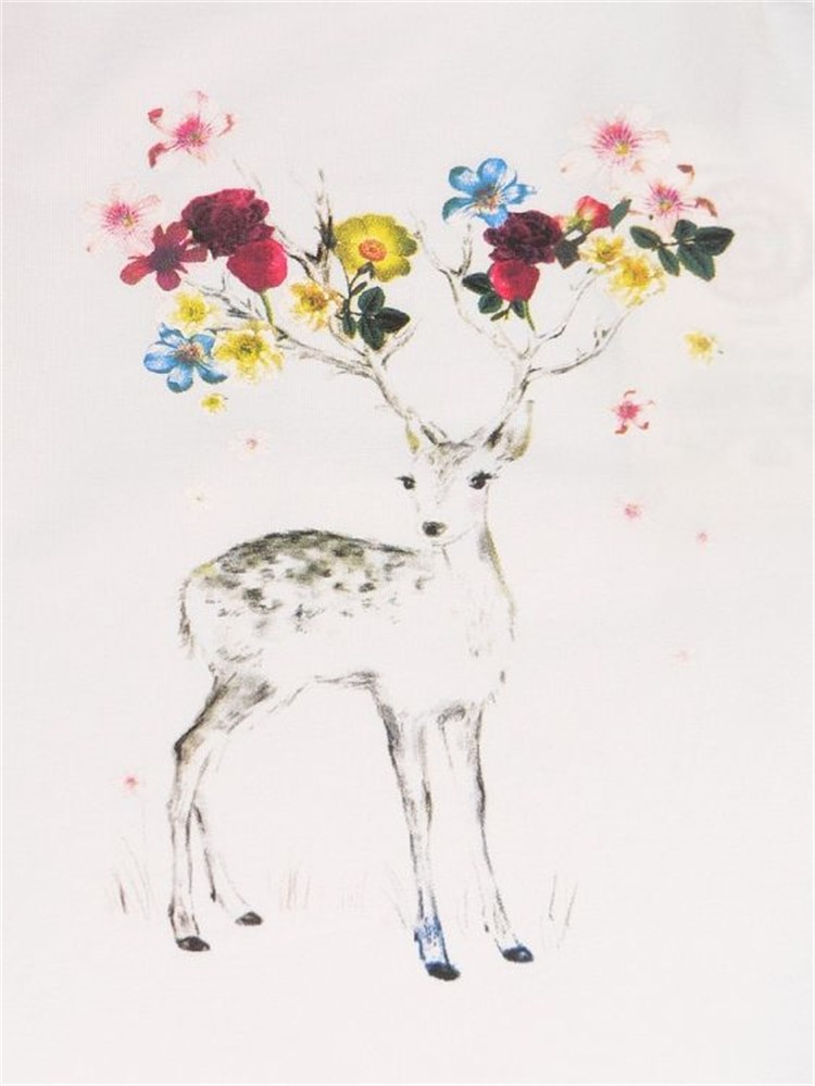 * Ön kısmında sevimli bambi ve renkli çiçek baskısı bulunan beyaz atlet
